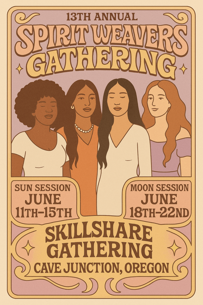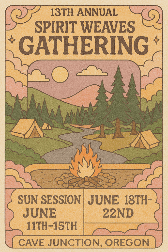 ~ Must leave space for words: Spirit Weavers Gathering, 2026 Sun Session June 11th-15th Moon Session June 18th-22nd 2026, Cave Junction Oregon. Or Cedar Bloom CJ Oregon